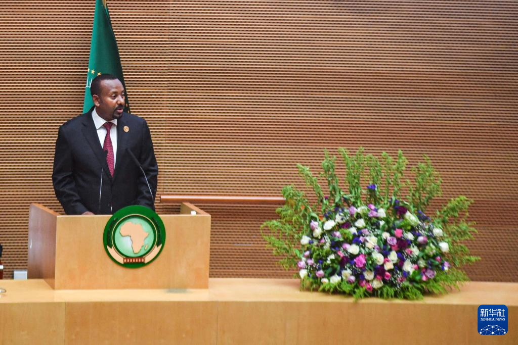 2月17日,在埃塞俄比亚首都亚的斯亚贝巴,埃塞俄比亚总理阿比·艾哈迈德·阿里在开幕式上发言。