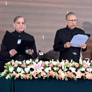 巴基斯坦新当选总理夏巴兹·谢里夫4日在巴首都伊斯兰堡总统府宣誓就职。