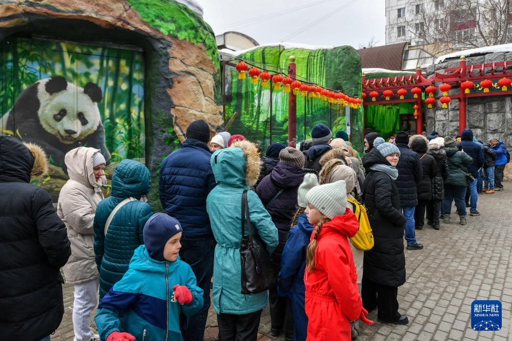 3月8日,人们在俄罗斯莫斯科动物园排队等待观看大熊猫“喀秋莎”。新华社记者 曹阳 摄