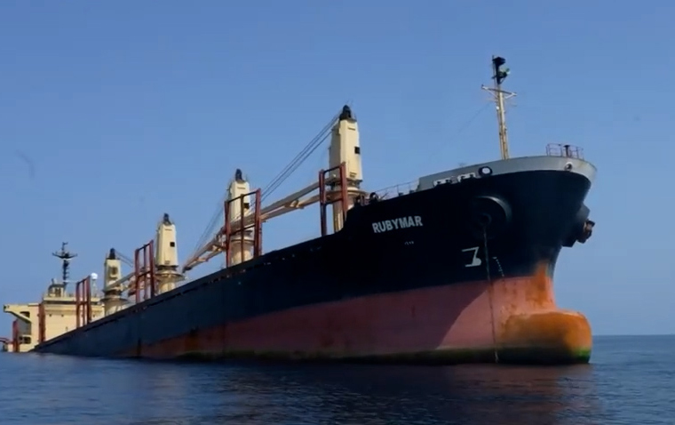 这张拍摄日期不明的照片显示了英国货轮“鲁比马尔”号沉没前的景象。2月18日,胡塞武装用导弹袭击了在亚丁湾行驶的“鲁比马尔”号,致该船严重损坏,船员被迫撤离。新华社发(也门政府供图)
