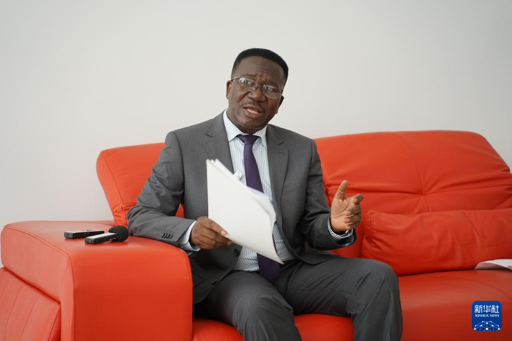 3月5日,在安哥拉首都罗安达,安哥拉内图大学校长佩德罗·马加良斯接受采访。新华社记者 李亚辉 摄