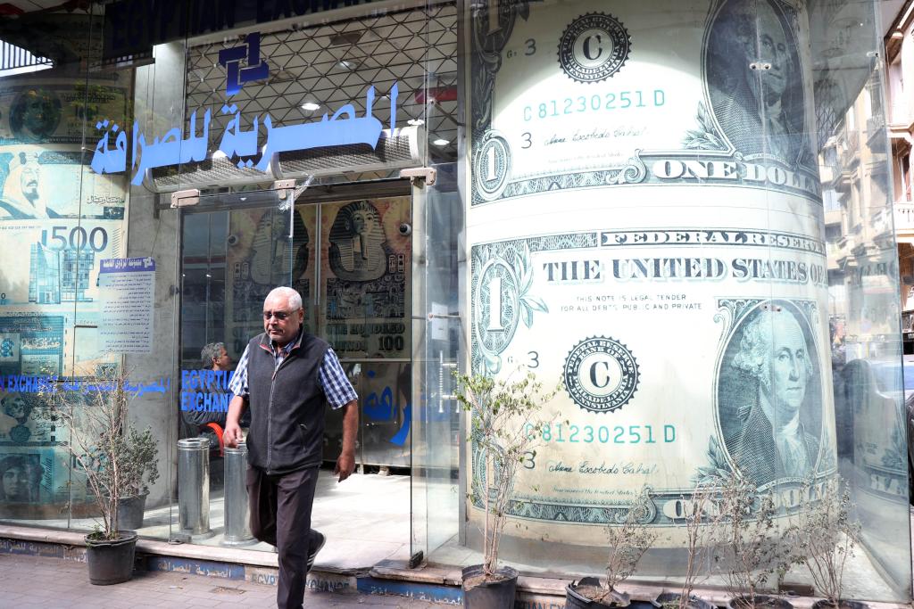 3月6日,一名男子走出埃及开罗的一家货币兑换点。新华社发(艾哈迈德·戈马摄)