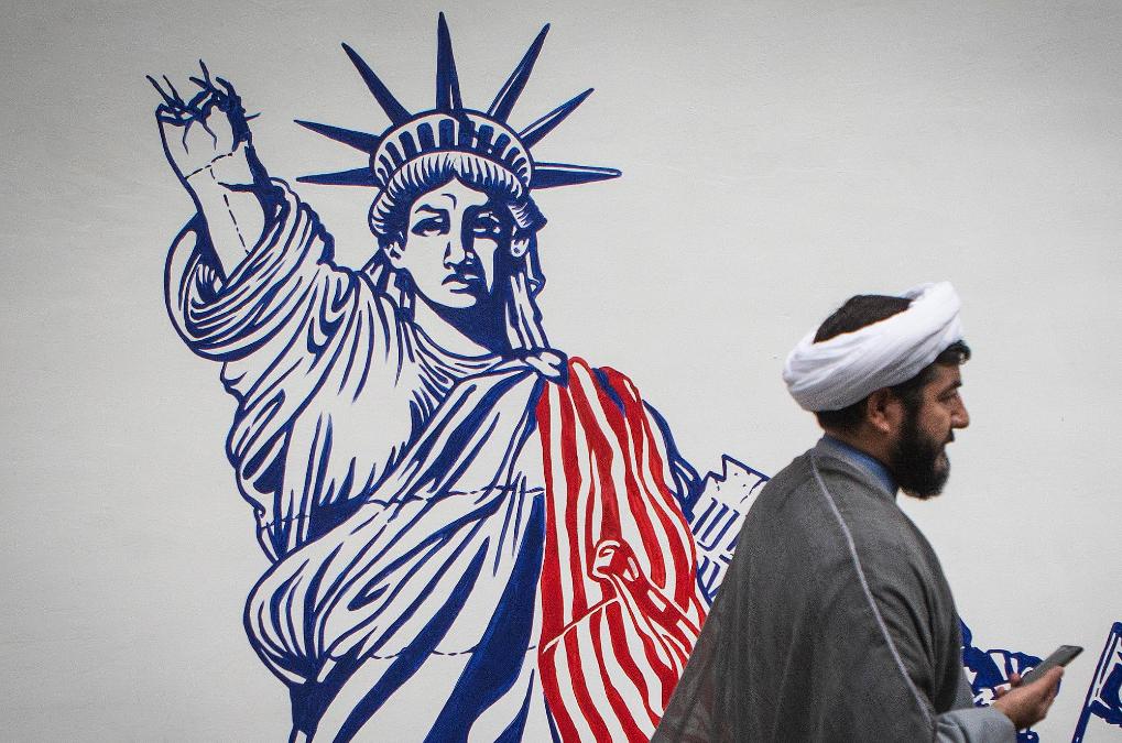 这张2019年11月4日的资料照片显示,行人从伊朗首都德黑兰街头的反美宣传画前走过。新华社发(艾哈迈德·哈拉比萨斯摄)