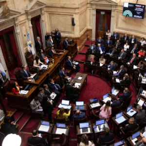 3月14日,在阿根廷布宜诺斯艾利斯,参议院议员审议总统米莱签署的一项政令。新华社发(马丁·萨巴拉摄)