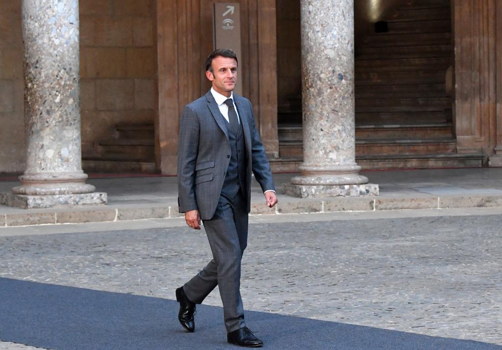 2023年10月5日,在西班牙格拉纳达,前来参加第三届欧洲政治共同体领导人会议的法国总统马克龙抵达阿尔罕布拉宫。新华社记者连漪摄