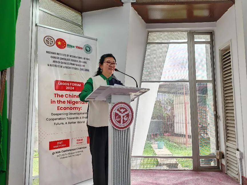 3月21日,中国驻拉各斯总领事严宇清在首届拉各斯论坛上致辞。(图片由中国驻拉各斯总领事馆提供)
