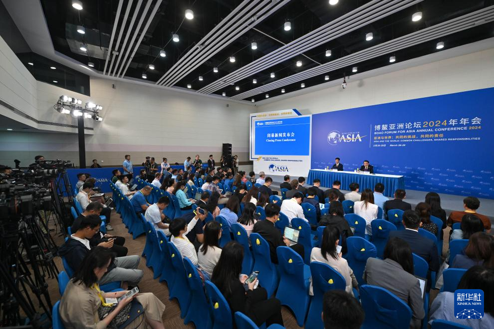 这是3月29日拍摄的博鳌亚洲论坛2024年年会闭幕新闻发布会现场。