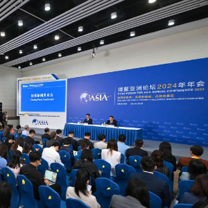 这是3月29日拍摄的博鳌亚洲论坛2024年年会闭幕新闻发布会现场。新华社记者 郭程 摄
