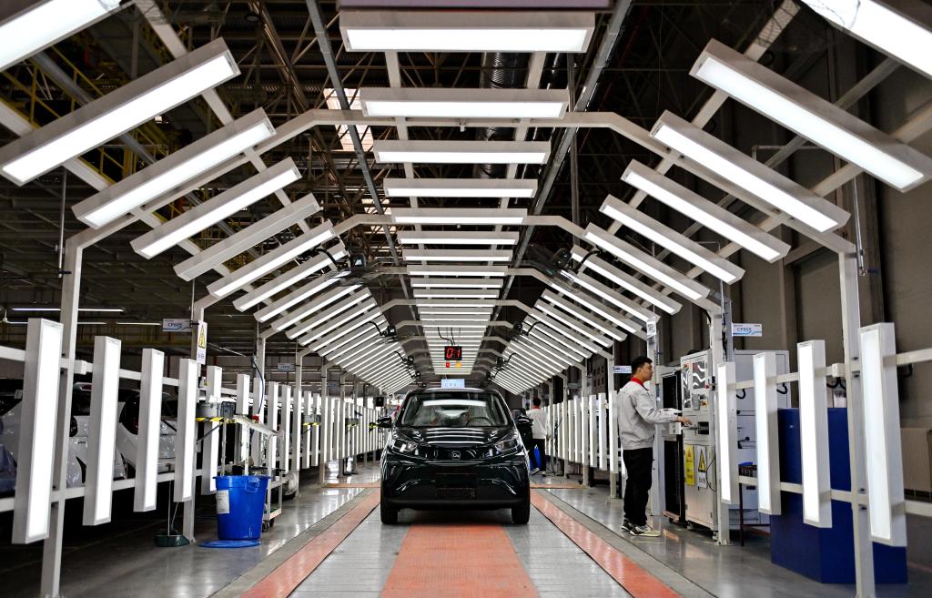3月19日,奇瑞新能源汽车股份有限公司石家庄分公司的工人在总装车间检测线上工作。新华社记者牟宇摄