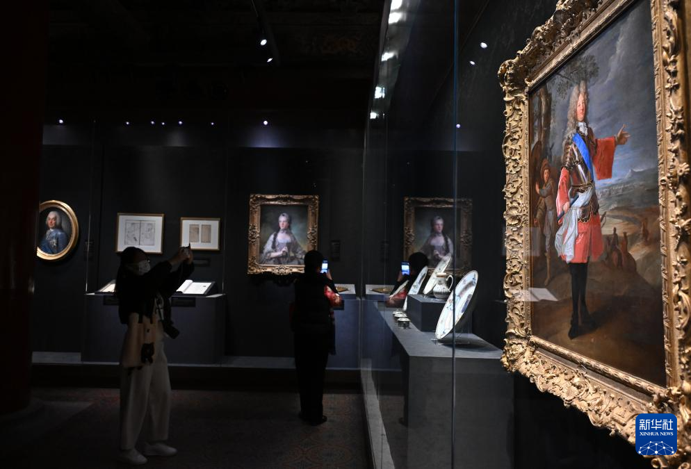 4月1日,观众参观凡尔赛宫收藏的乾隆皇帝像瓷版画。新华社记者金良快摄