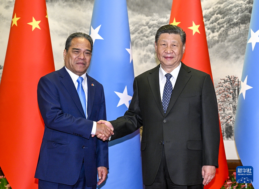 习近平指出,今年是中密建交35周年。两国始终相互尊重、平等相待,友好合作、互利共赢,增进了两国人民福祉。中方支持密方维护国家主权和独立,走符合本国国情的发展道路,振兴经济和改善民生。中方愿同密方一道,以两国建交35周年为新起点,保持各层级交流对话,加强各领域互利合作,推动中密关系迈上新台阶。双方要坚守两国全面战略伙伴关系的政治定位,坚持互利共赢、共同发展的合作基调,加快推进共建“一带一路”合作,加强基础设施项目合作,密切文化、卫生、教育、地方等人文交流。欢迎更多密克罗尼西亚联邦青年来华深造。中国地方“送医上岛”、“送戏下海”等项目深受密联邦民众欢迎,双方可以开展更多类似项目。中方愿在南南合作框架内向密方提供应对气候变化援助、开展能力建设培训。加强在联合国、太平洋岛国论坛等多边框架内协调配合,共同践行多边主义,维护公道正义。