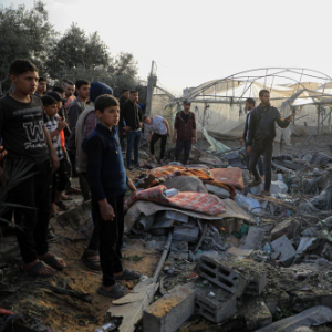 3月27日,在加沙地带南部城市拉法,人们查看以军空袭后的废墟。新华社发(里泽克·阿卜杜勒贾瓦德摄)