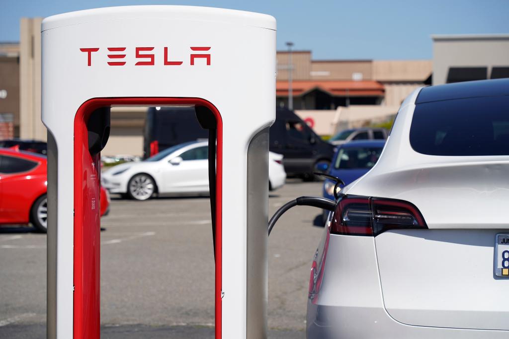 这是4月2日在美国加州圣布鲁诺一处停车场拍摄的特斯拉汽车。新华社发(李建国摄)