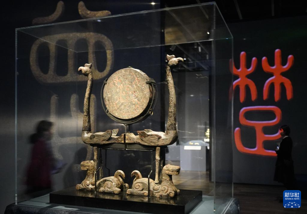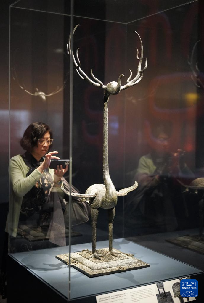 这是4月19日在美国旧金山亚洲艺术博物馆举办的“凤凰故国——青铜时代曾楚艺术展”上拍摄的展品。新华社记者 吴晓凌 摄