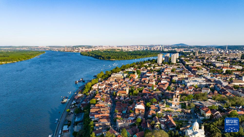 塞尔维亚贝尔格莱德泽蒙小镇景色(2024年4月29日摄,无人机照片)。