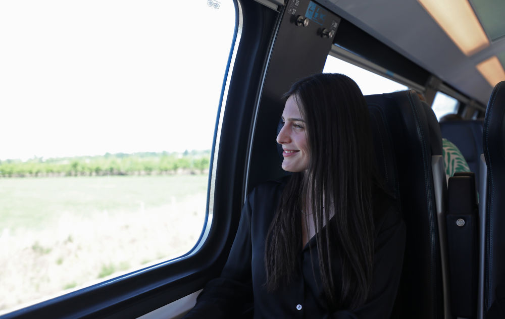 27岁的亚历山德拉搭乘匈塞铁路诺维萨德至贝尔格莱德的列车回家(2024年4月29日摄)。新华社记者 李颖 摄
