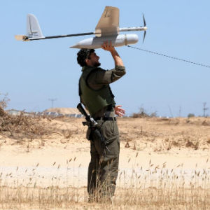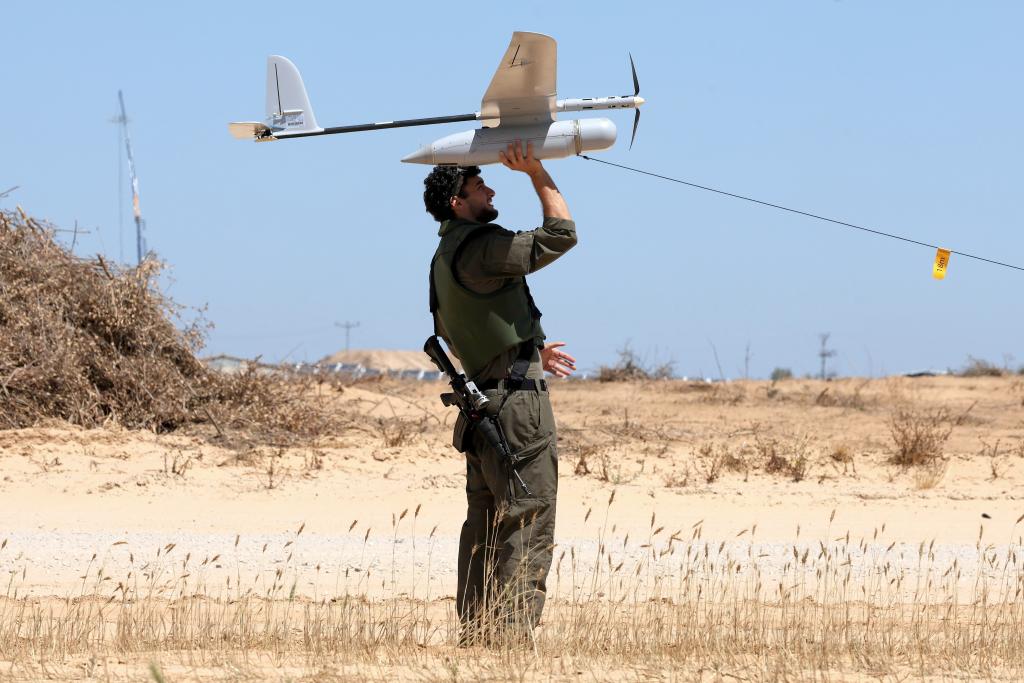 5月8日,在以色列南部凯雷姆沙洛姆口岸附近,一名以军士兵准备放飞无人机。新华社发(伊兰·阿萨亚格摄/基尼图片社)