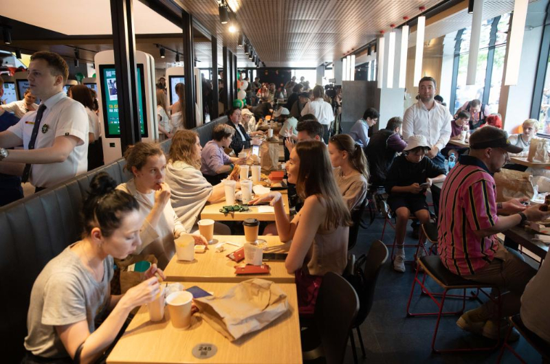 2022年6月12日,顾客在俄罗斯首都莫斯科普希金广场的“只有美味”连锁餐厅用餐。新华社记者白雪骐摄