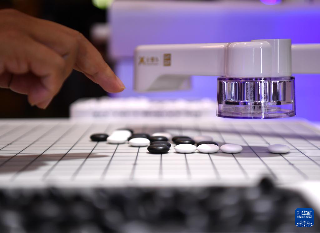 5月30日,在瑞士日内瓦举行的2024年“人工智能造福人类全球峰会”上,参会者和中国移动开发的AI机器人下棋。