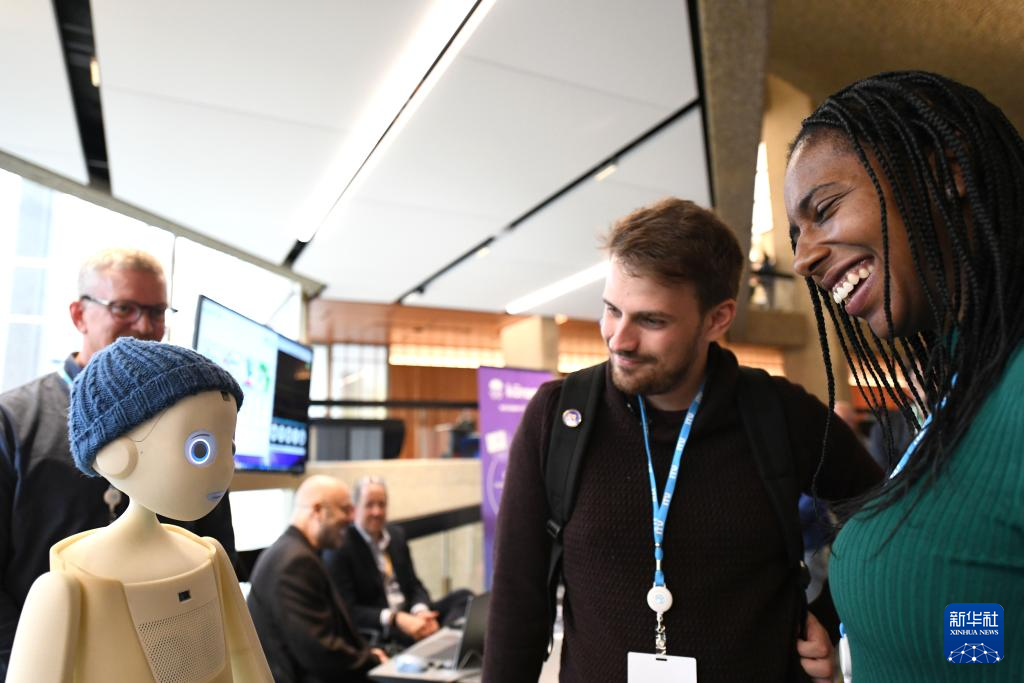 这是5月30日在瑞士日内瓦举行的2024年“人工智能造福人类全球峰会”上拍摄的仿生机器人。