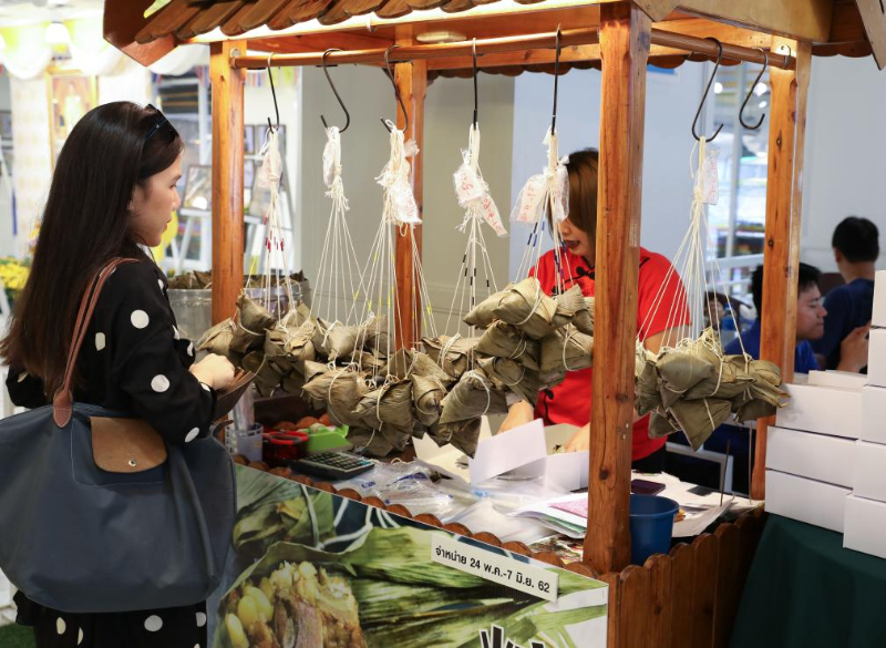 2019年6月2日,一名女子在泰国曼谷的一家酒店内购买粽子。新华社记者张可任摄