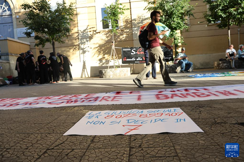 人们在广场拉起用意大利语、英语等多语种书写的横幅——“不要G7”“停止种族灭绝”“G7正在破坏地球”……一些人举起巴勒斯坦国旗,抗议峰会对加沙冲突不作为。