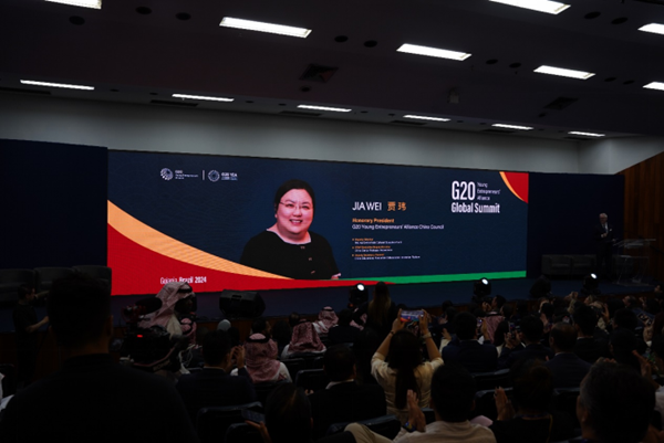 本次峰会上,作为G20青年企业家联盟中国理事会荣誉理事长,贾玮在开幕式上发表了压轴主旨演讲,为峰会增添了更多亮点。贾玮强调了文化在商业交流中的桥梁作用,并提出通过文化的连接,可以加深不同国家之间的理解与信任,进而促进全球合作的深化。贾玮还分享了中国的商业文化,特别是创业精神与创新思维,并鼓励各国青年企业家来华加强交流,共同探索商业发展的新机遇。