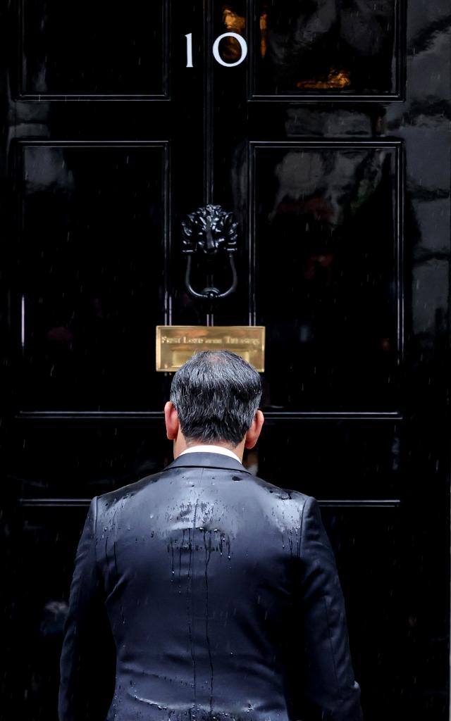 2024年5月22日,英国首相苏纳克在伦敦唐宁街10号首相府前发表讲话后返回室内。新华社发