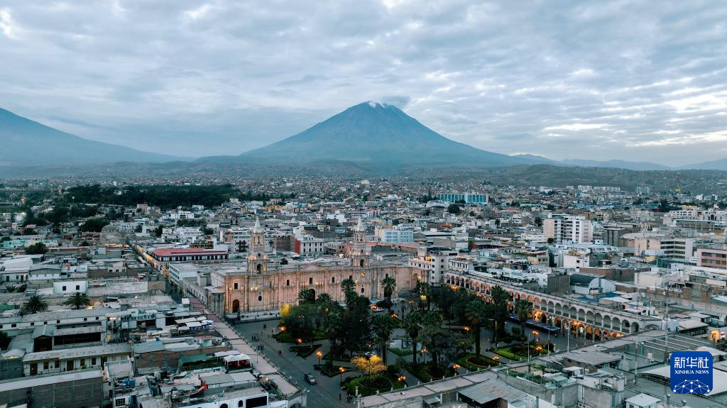 这是6月19日拍摄的米斯蒂火山脚下的秘鲁城市阿雷基帕(无人机照片)。