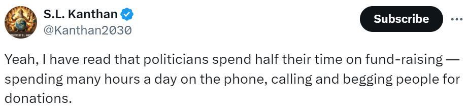 “讥录片”在海外播发后,引发专家、网友共鸣。印度地缘政治专家坎坦点赞“这是来自新华社的好纪录片”并评论:“我读到过,政客们把一半时间花在筹款上——每天花好几个小时打电话,求人们捐款。”