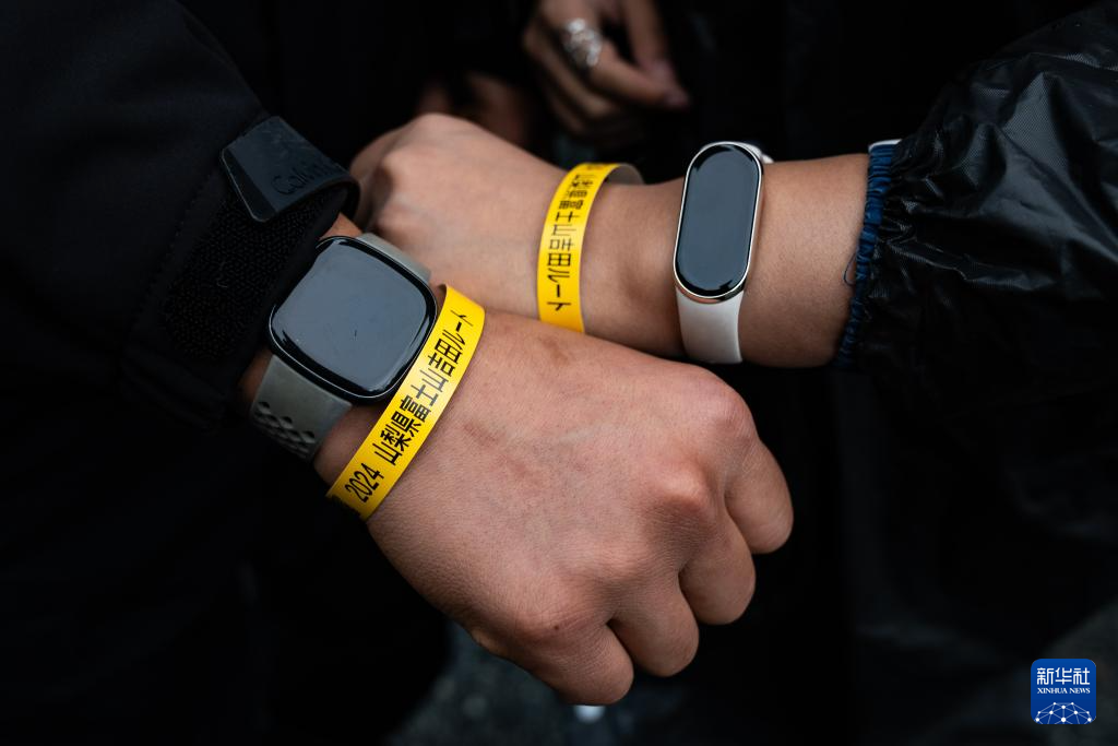 这是7月1日在日本山梨县富士山吉田路线五合目登山口拍摄的象征已支付登山通行费的腕带。