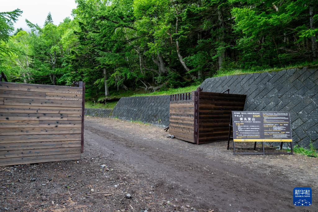 这是6月30日在日本山梨县富士山吉田路线五合目登山口拍摄的新加装的大门及禁止通宵登山的告示。
