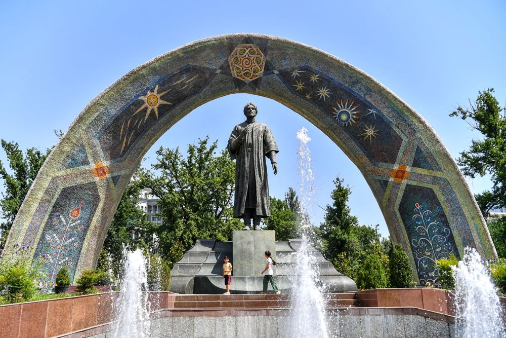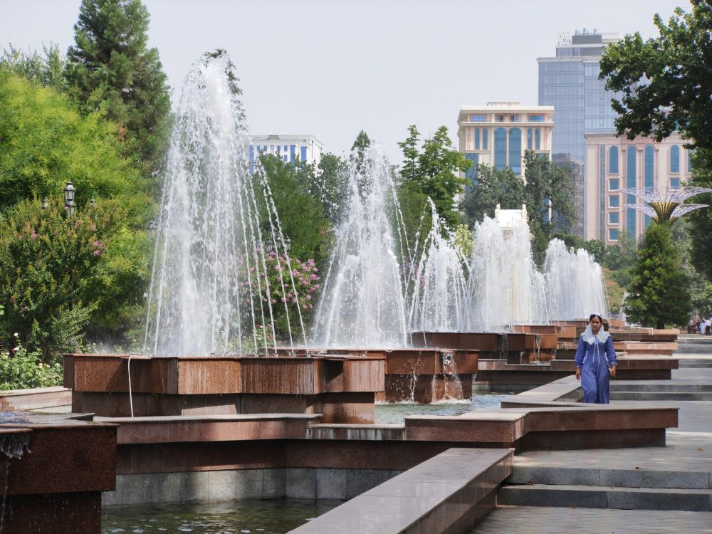 ↑位于杜尚别的鲁达基公园。 新华社记者 曹阳 摄