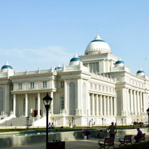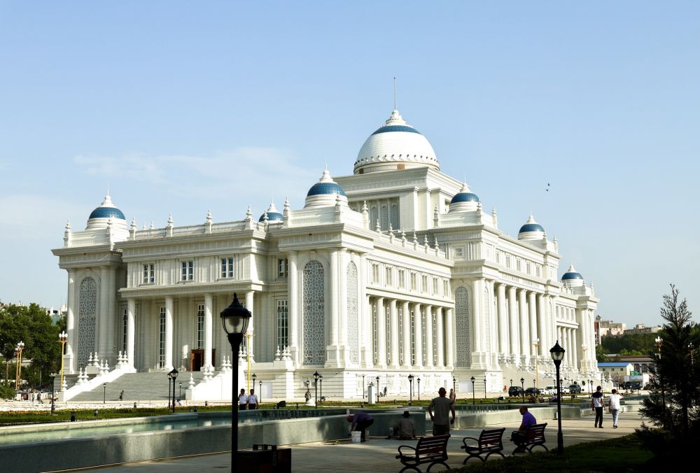 ↑位于杜尚别的塔吉克斯坦议会大楼。 新华社记者 周荻潇 摄