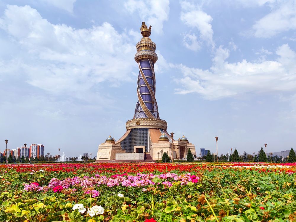 ↑位于杜尚别的独立与自由塔。 新华社记者 申宏 摄