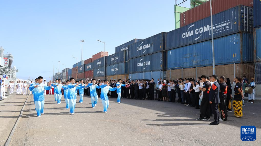 当地时间10日8时许,悬挂着中摩两国国旗的编队舰艇焦作舰、洪湖舰缓缓驶入摩洛哥卡萨布兰卡港。摩洛哥军方代表、当地民众,中国驻摩洛哥大使馆工作人员、中资机构和华侨华人代表等300余人到码头迎接。欢迎仪式后,欢迎人群分批登舰参观。