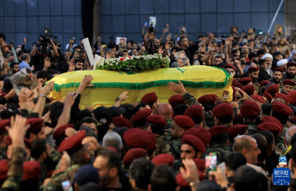 8月1日,在黎巴嫩首都贝鲁特,真主党支持者参加真主党高级军事指挥官福阿德·舒库尔的葬礼。黎巴嫩真主党领导人纳斯鲁拉1日表示,真主党和所有抵抗战线与以色列的战争已进入新阶段,并誓言对真主党高级军事指挥官福阿德·舒库尔和巴勒斯坦伊斯兰抵抗运动(哈马斯)领导人哈尼亚遭暗杀事件进行报复。新华社发(比拉尔·贾维希摄)