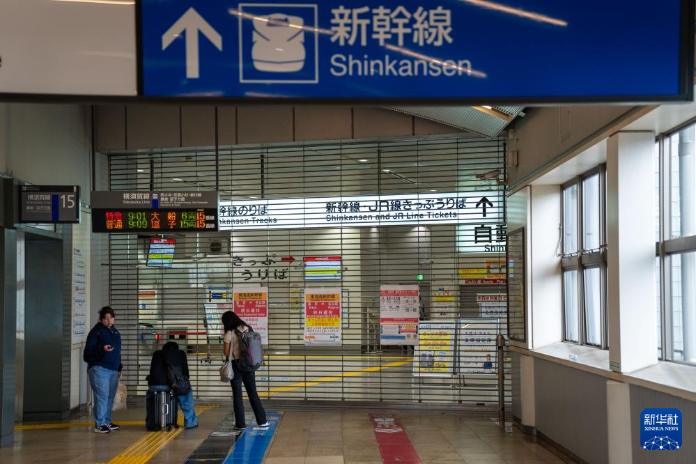 8月16日,乘客站在关闭的日本东京品川新干线站点旁。