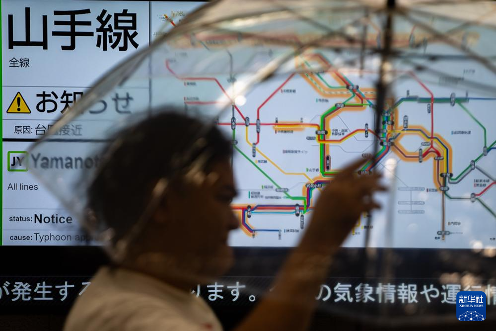 8月16日,行人走过日本东京目黑车站的一处交通告示屏幕。