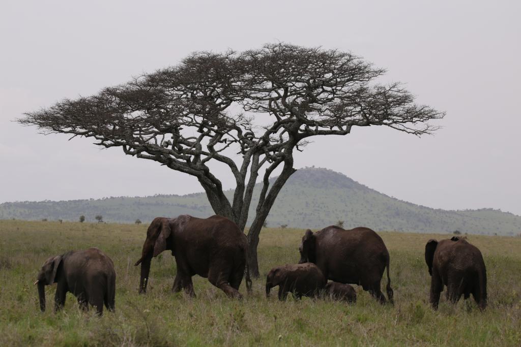 2022年2月10日,在坦桑尼亚塞伦盖蒂国家公园,象群正在行进。新华社发(曹静敏摄)