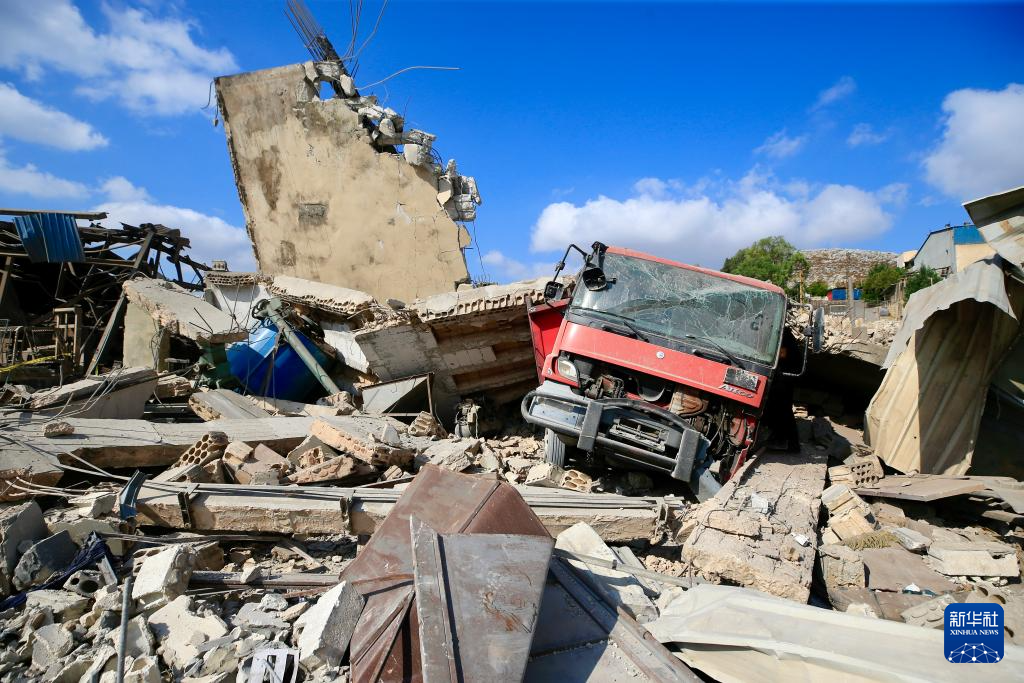 这是8月17日在黎巴嫩奈拜提耶拍摄的在以色列空袭中被毁的建筑和卡车。