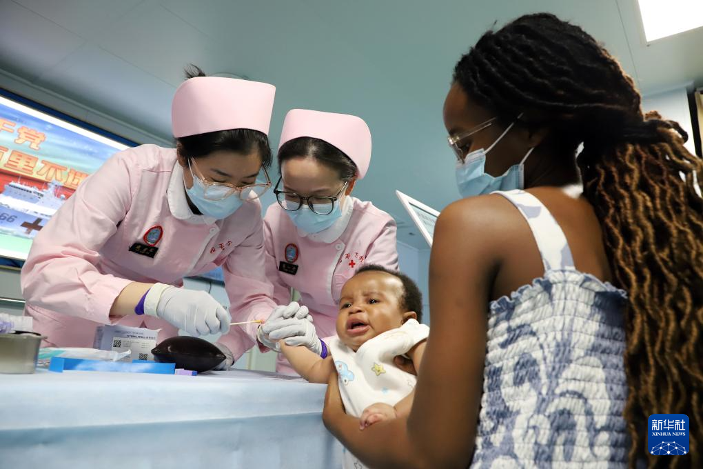 8月12日,中国海军“和平方舟”号医院船在莫桑比克马普托开展医疗服务。