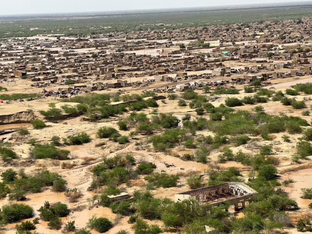 这是8月26日在苏丹红海州拍摄的溃坝洪水灾区(航拍照片)。新华社发(苏丹主权委员会供图)