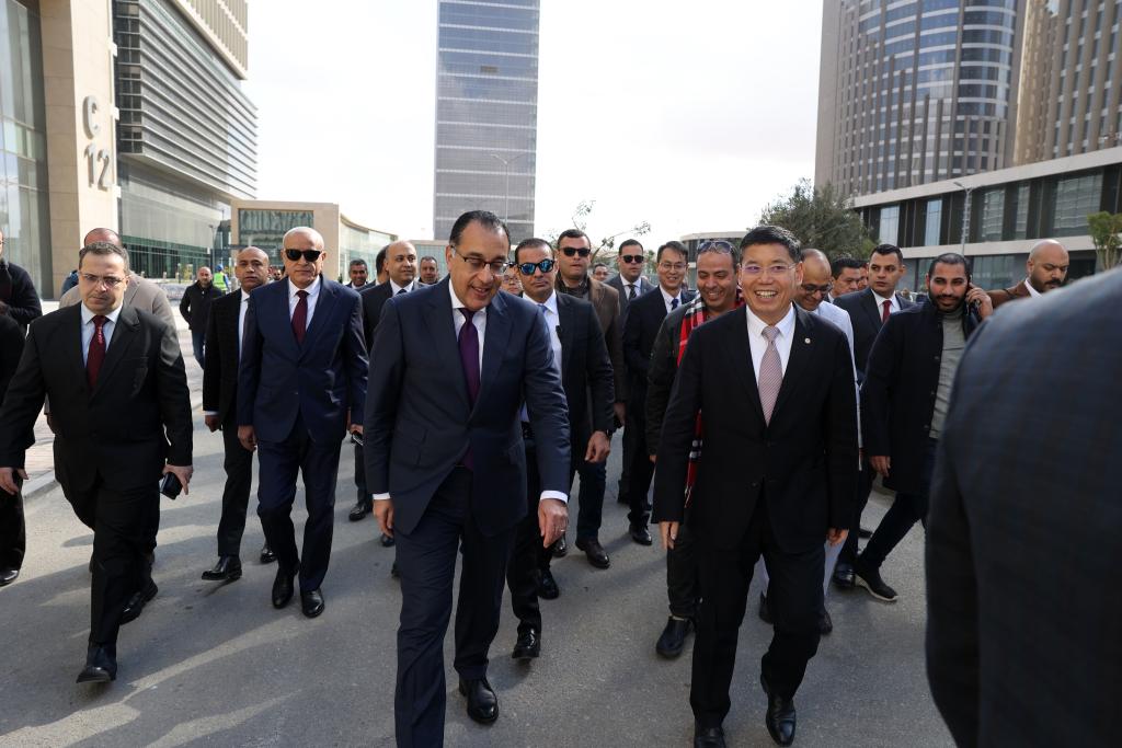 图为2024年1月14日,埃及总理马德布利(前左)视察埃及新行政首都中央商务区项目。新华社发(黎炳宏摄)