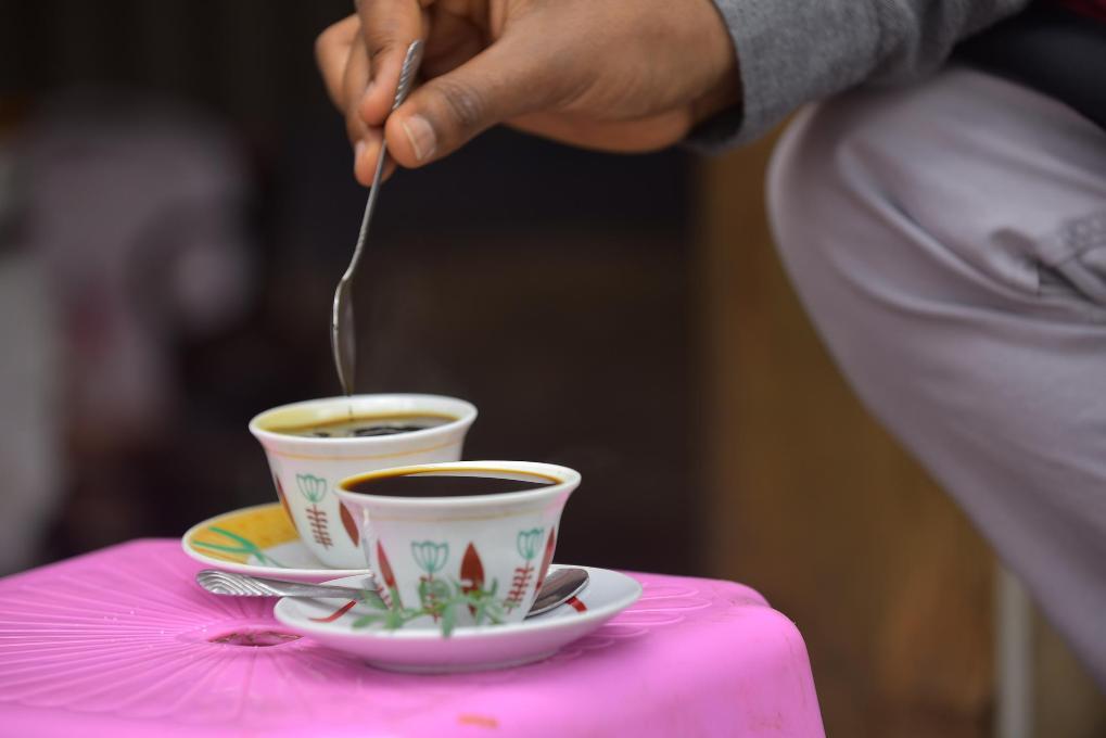 在首都亚的斯亚贝巴,有两种截然不同的咖啡馆:一种是受二战意大利占领时期影响、在城市繁华区域开设的环境优雅的咖啡店;另一种则是遍布大街小巷、花15比尔(约合1元人民币)就能喝上一杯现磨咖啡的路边摊。这些路边摊虽然设施简陋,但提供给顾客喝咖啡的仪式感一点儿也不少,因此深受民众青睐。