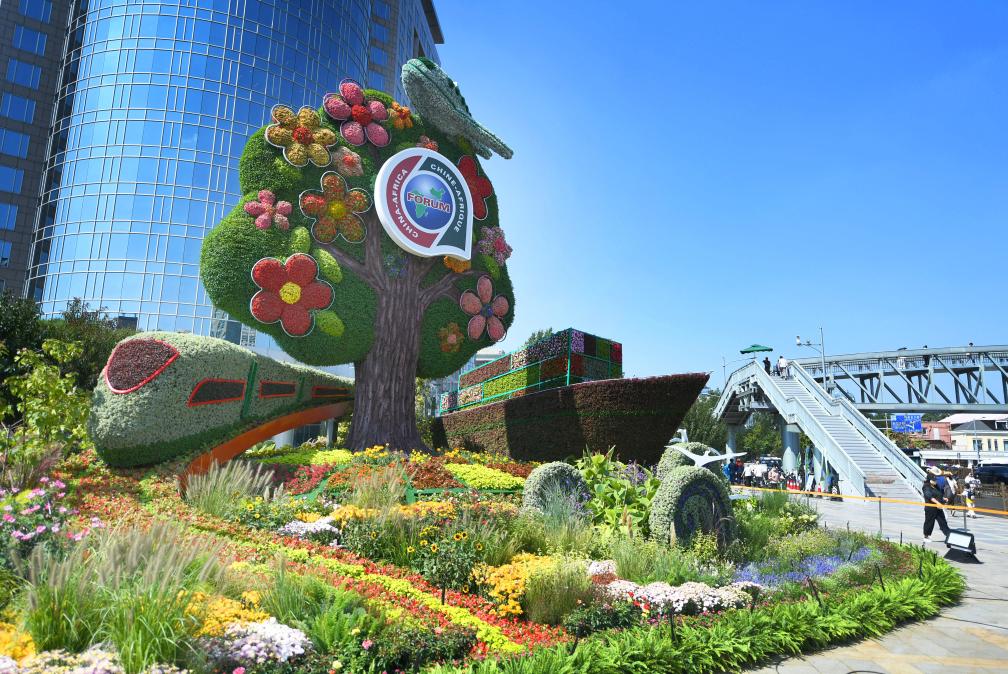 2024年中非合作论坛峰会于9月4日至6日在北京举行。图为8月29日在北京市东单附近拍摄的“合作共赢”花坛。新华社记者 任超 摄