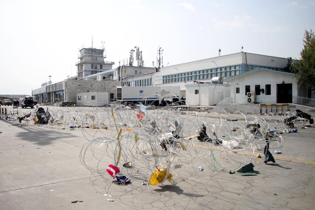 这是2021年8月31日在阿富汗喀布尔机场拍摄的防护网。新华社发(塞夫拉赫曼·萨菲摄)