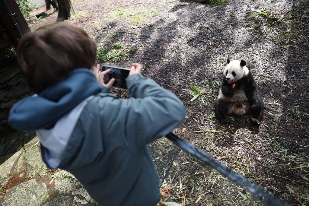 9月9日,在位于比利时布吕热莱特的天堂动物园,一名小朋友拍摄大熊猫“宝弟”。新华社记者赵丁喆摄