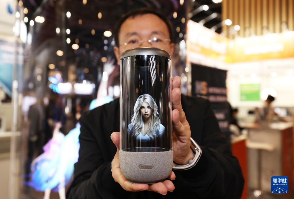来自英国的展商萨姆·恰金参观了一款中国人工智能全息数字人一体机后告诉新华社记者:“中国这款产品像素高、特效清晰,效果很震撼。”他表示,这款产品可以用于零售业展示商品,或者在购物中心做大品牌宣传等。