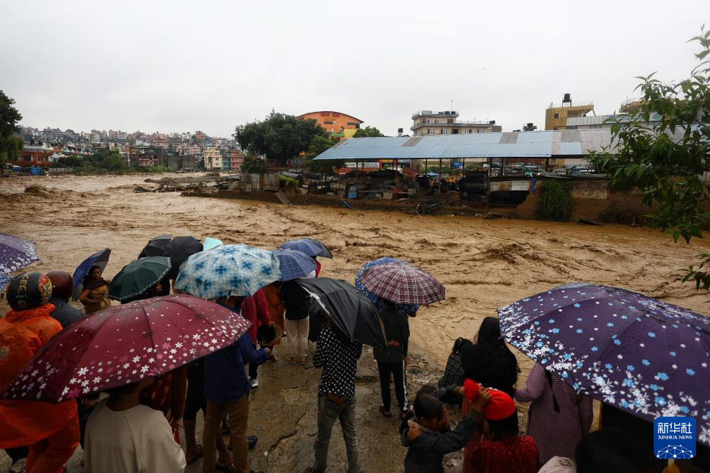这是9月28日在尼泊尔加德满都一处街区拍摄的洪水。新华社发(哈里·马哈尔詹摄)